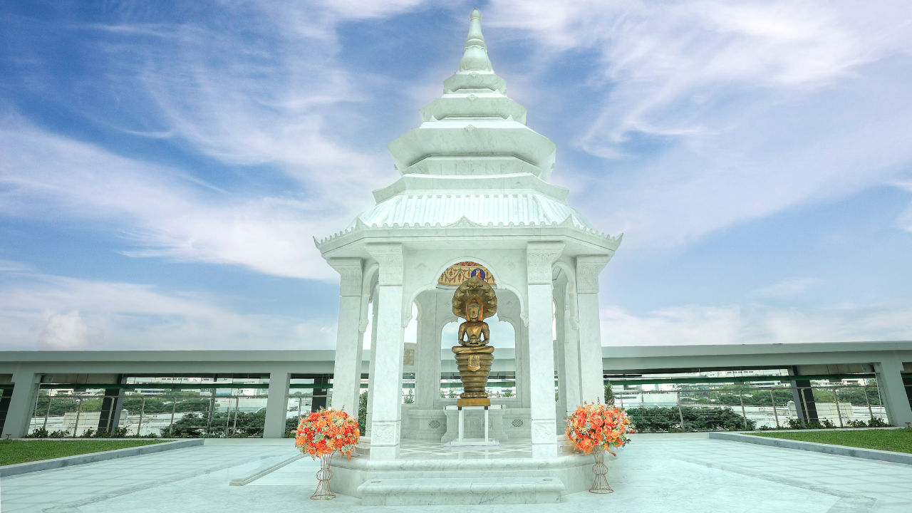 เป็นพระพุทธประจำโรงพยาบาลจุฬาภรณ์ ออกแบบตามพระวินิจฉัย ศาสตราจารย์ ดร. สมเด็จพระเจ้าน้องนางเธอ เจ้าฟ้าจุฬาภรณวลัยลักษณ์ อัครราชกุมารี กรมพระศรีสวางควัฒน วรขัตติยราชนารี โดย ศาสตรเมธีนนทิวรรธน์ จันทนะผะลิน ศิลปินแห่งชาติ ประจำปีพุทธศักราช ๒๕๔๙ สาขาทัศนศิลป์ (ประติมากรรม)