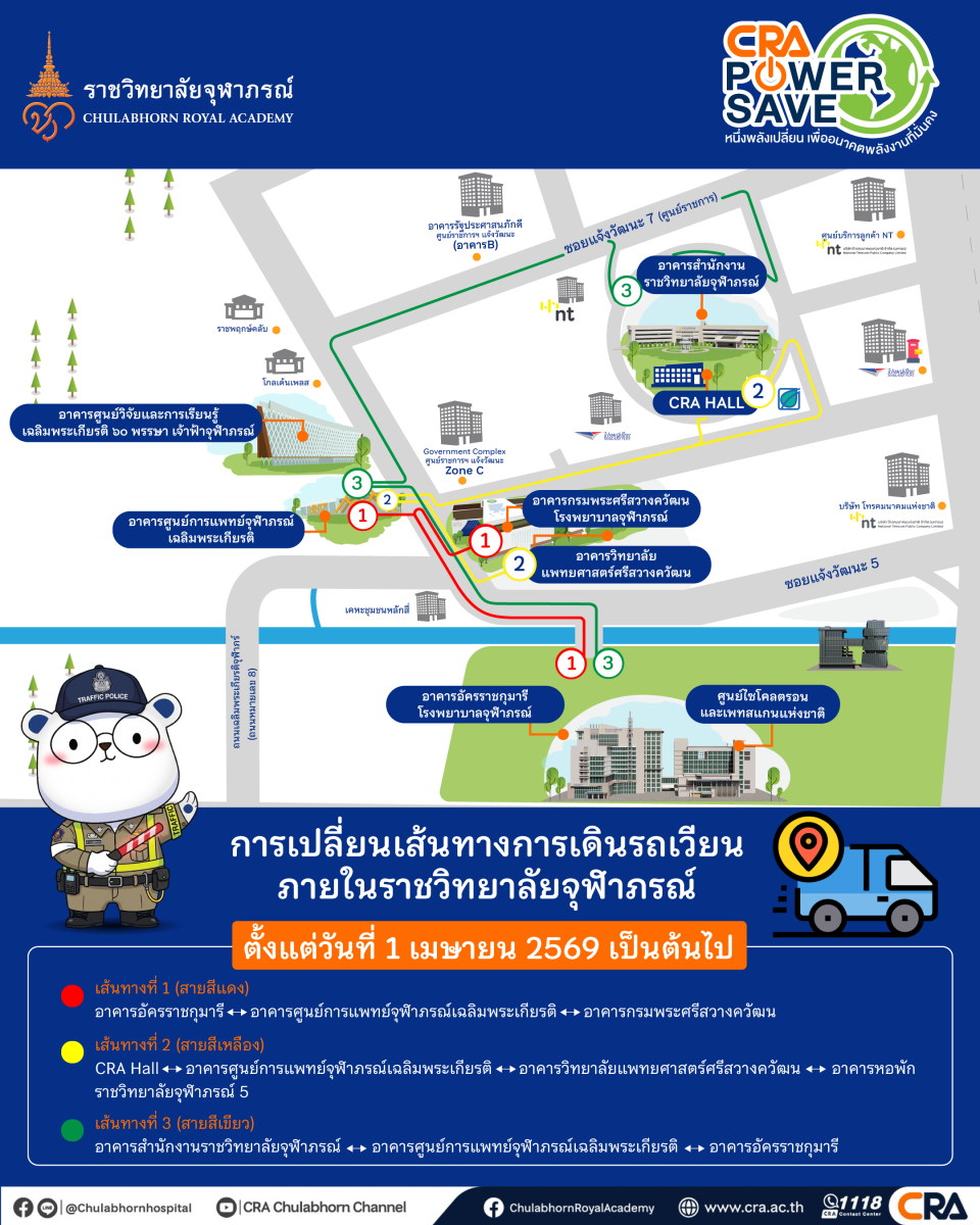 (๑.๓) เส้นทางที่ ๒: CRA Hall - อาคารศูนย์การแพทย์จุฬาภรณ์เฉลิมพระเกียรติ - อาคารวิทยาลัยแพทยศาสตร์ศรีสวางควัฒน - อาคารหอพักราชวิทยาลัยจุฬาภรณ์ ๕