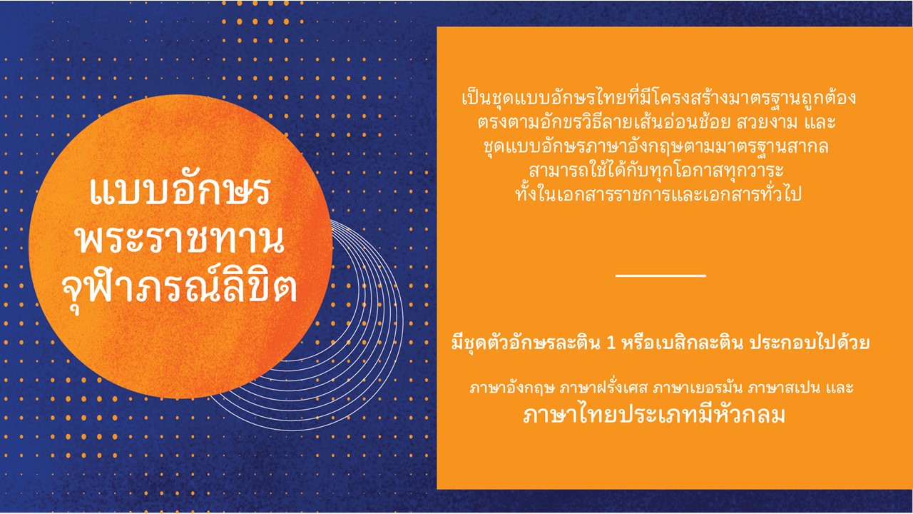 คณะรัฐมนตรี มีมติเห็นชอบให้หน่วยงานภาครัฐทุกหน่วยงานดำเนินการติดตั้งชุดแบบอักษรพระราชทาน “จุฬาภรณ์ลิขิต” เพิ่มเข้าไปในระบบปฏิบัติการ Thai OS ภายในปี พ.ศ. ๒๕๖๔ ซึ่งถือเป็นชุดแบบอักษรมาตรฐานราชการไทย แบบที่ ๑๔ เมื่อวันที่ ๖ กรกฎาคม ๒๕๖๔ เนื่องในโอกาสวันคล้ายวันประสูติ ๖๔ พรรษา ของศาสตราจารย์ ดร. สมเด็จพระเจ้าน้องนางเธอ เจ้าฟ้าจุฬาภรณวลัยลักษณ์ อัครราชกุมารี กรมพระศรีสวางควัฒน วรขัตติยราชนารี และในโอกาสที่ทรงสำเร็จการศึกษาหลักสูตรปรัชญาดุษฎีบัณฑิต สาขาวิชาทัศนศิลป์ คณะจิตรกรรม ประติมากรรมและภาพพิมพ์ มหาวิทยาลัยศิลปากร