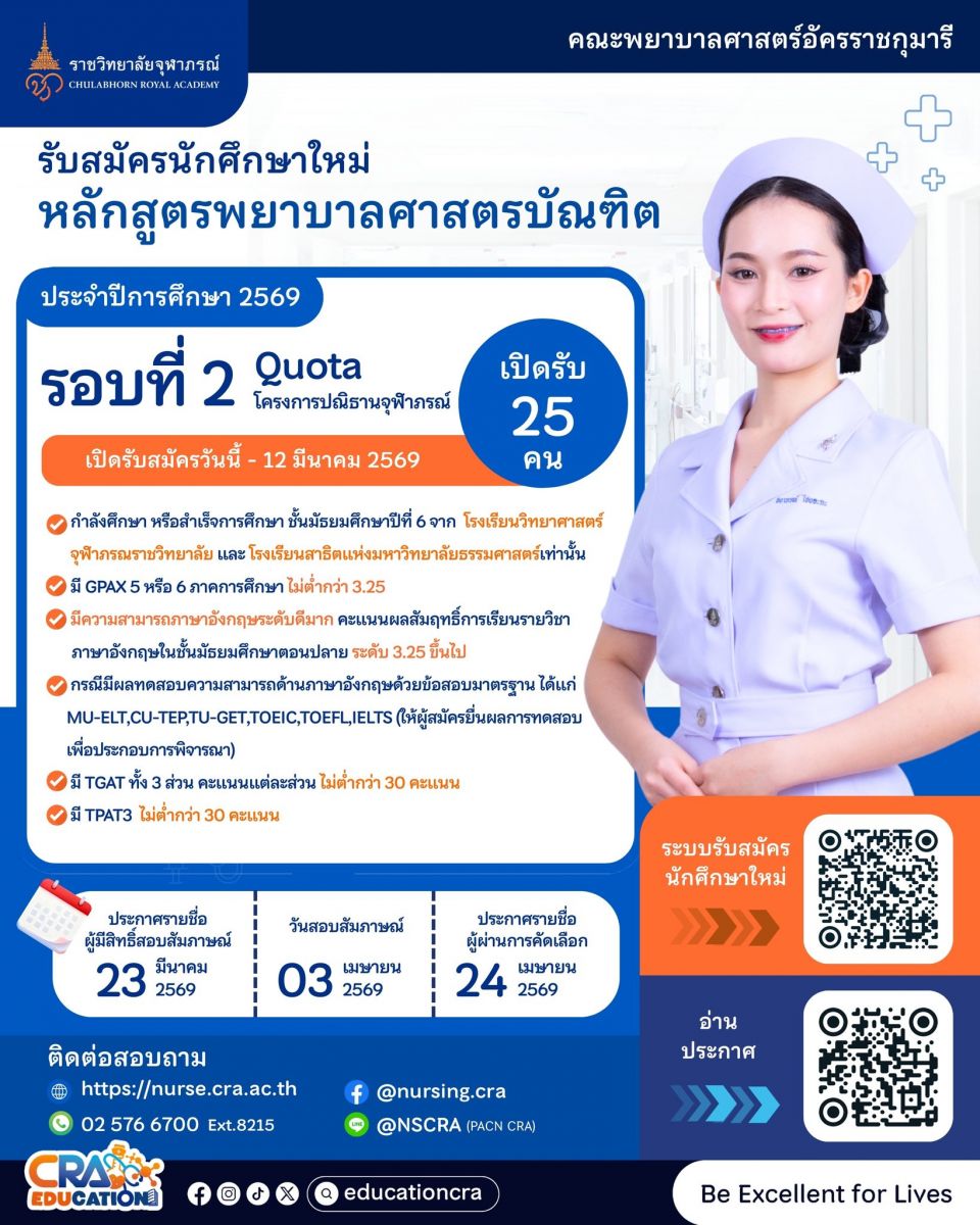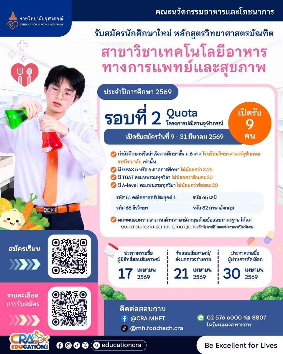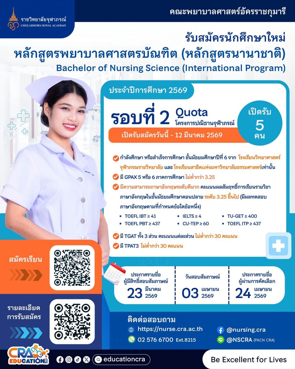 สมัครผ่าน: https://reg.cra.ac.th/cra_erp_edu/admission