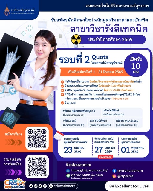 สมัครเรียน >> https://admission.cra.ac.th/