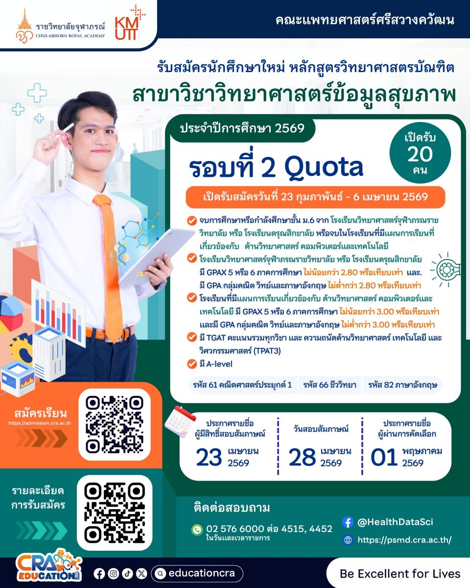 รับสมัคร : https://reg.cra.ac.th/cra_erp_edu/admission