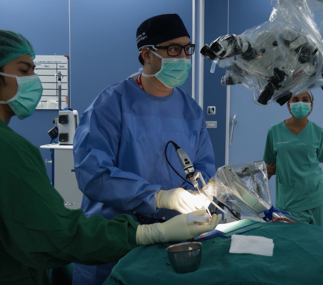 ความโดดเด่นของการผ่าตัดครั้งนี้ คือการเข้าถึงตำแหน่งของเนื้องอกผ่านช่องเปิดขนาดเล็กบริเวณคิ้ว ซึ่งเป็นการผ่าตัดแบบแผลเล็ก (Minimally Invasive Surgery) โดยใช้อุปกรณ์ทางการแพทย์ขั้นสูง ประกอบด้วย: