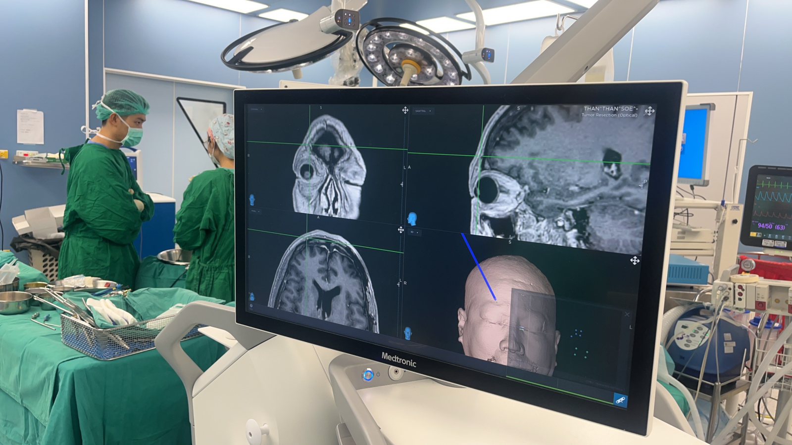 • เครื่องนำวิถี (Neuronavigation): ช่วยกำหนดตำแหน่งของเนื้องอกได้อย่างแม่นยำ ลดผลกระทบต่อเนื้อสมองส่วนดีและโครงสร้างสำคัญข้างเคียง