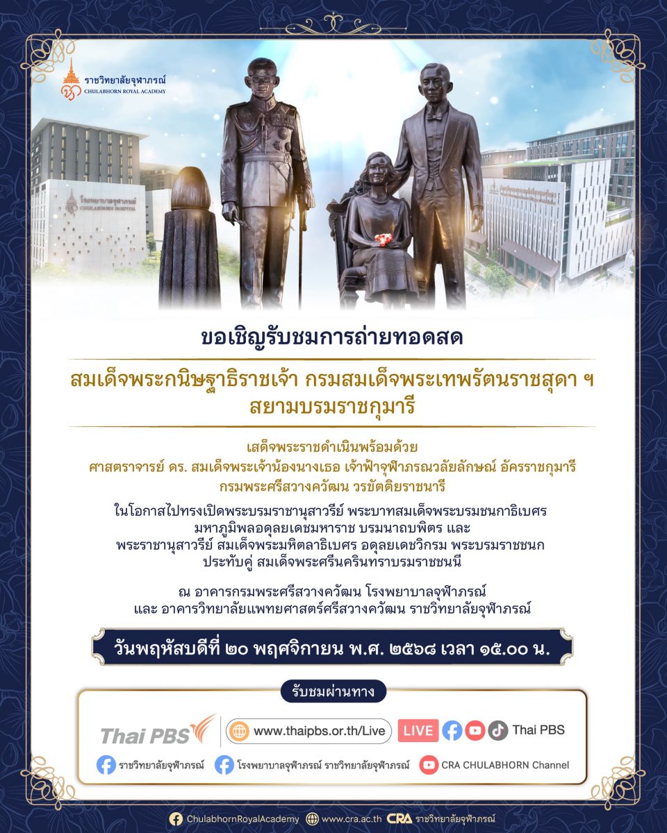 •Facebook ราชวิทยาลัยจุฬาภรณ์ Chulabhorn Royal Academy