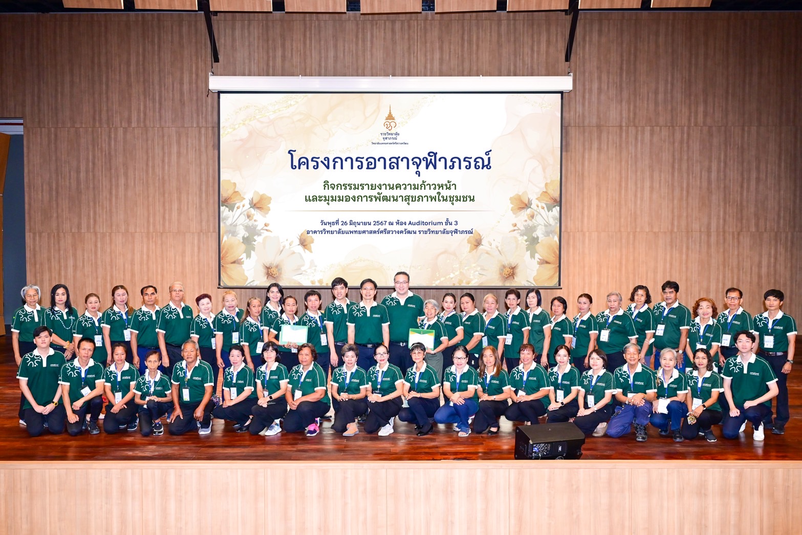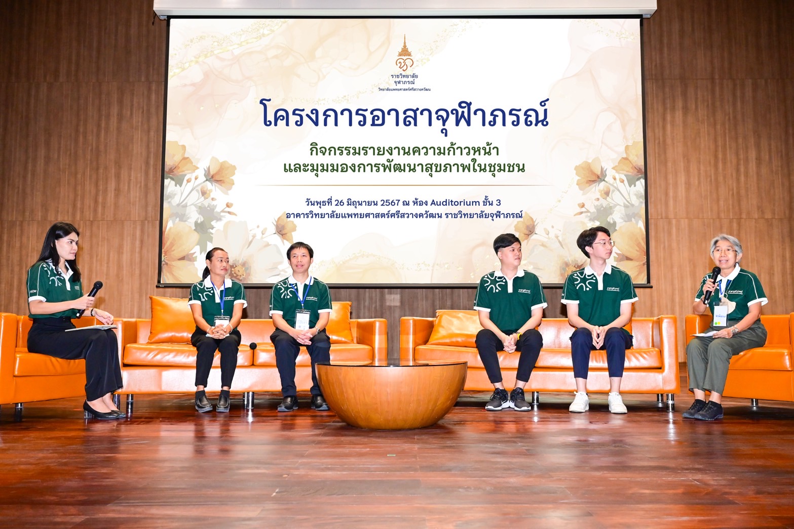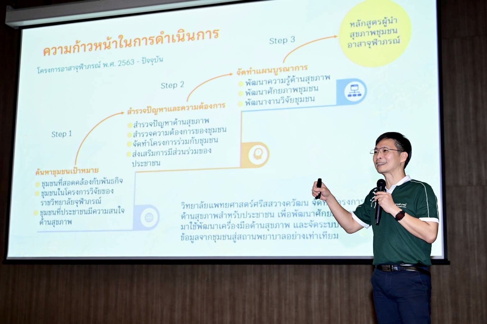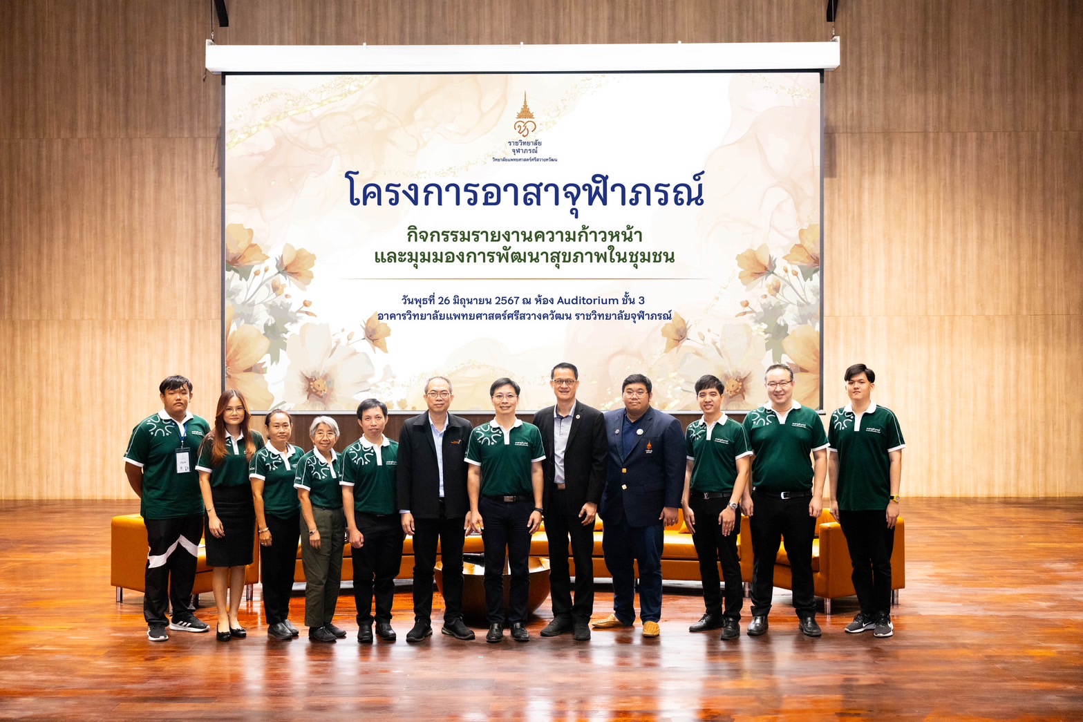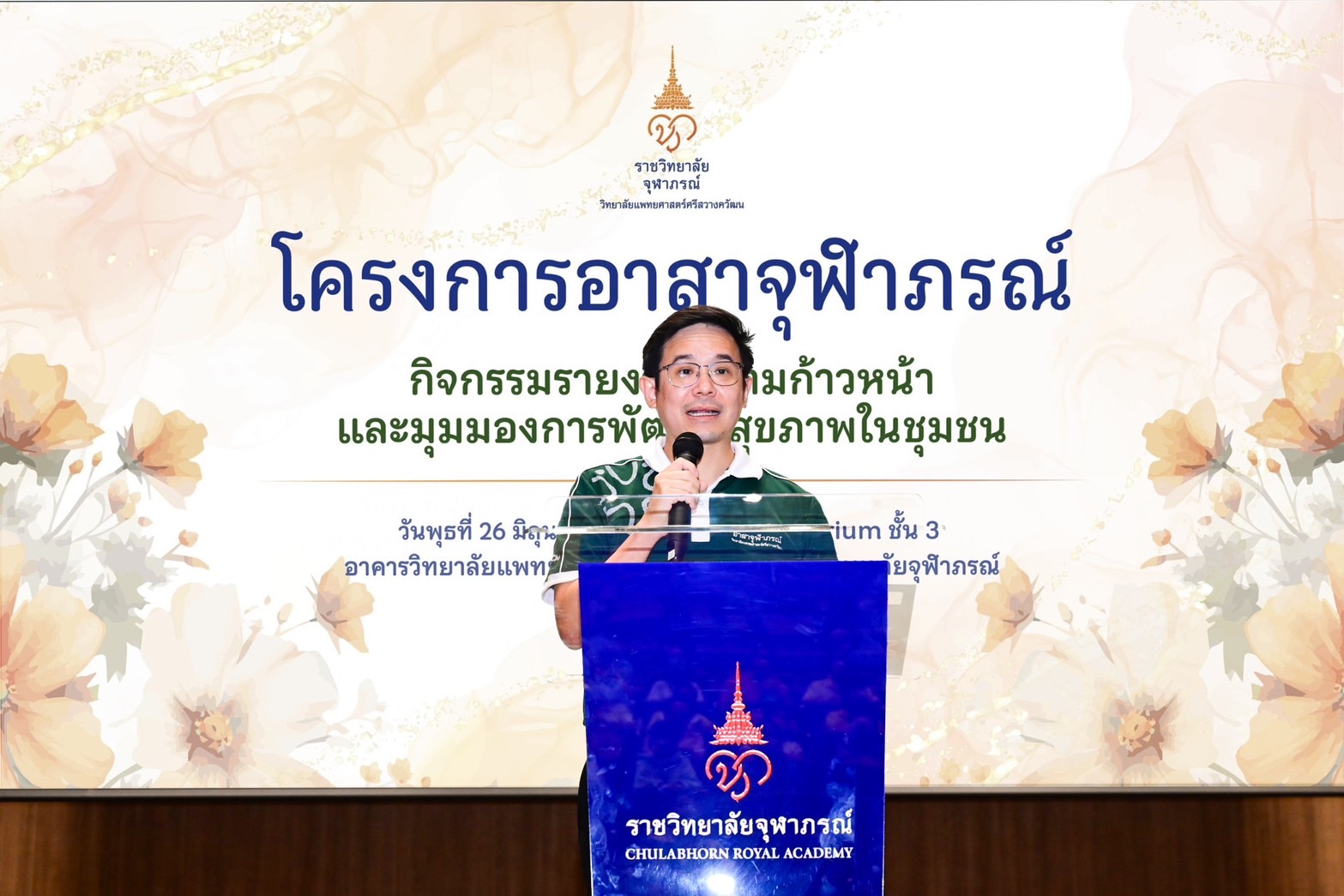 วิทยาลัยแพทยศาสตร์ศรีสวางควัฒน ราชวิทยาลัยจุฬาภรณ์ จัดงานแถลงข่าวความก้าวหน้า “โครงการอาสาจุฬาภรณ์” ซึ่งเริ่มต้นโครงการตั้งแต่ปี พ.ศ. ๒๕๖๓ จนถึงปัจจุบัน พร้อมผู้นำชุมชนและผู้ที่สนใจด้านสุขภาพเพื่อสร้างชุมชนต้นแบบอย่างยั่งยืน โดยมี รองศาสตราจารย์ นายแพทย์ธีรภัทร อึ้งตระกูล รักษาการคณบดีวิทยาลัยแพทยศาสตร์ศรีสวางควัฒน พร้อมด้วย ผู้ช่วยศาสตราจารย์ นายแพทย์วิสุทธิ์ ล้ำเลิศธน รักษาการรองคณบดีวิทยาลัยแพทยศาสตร์ศรีสวางควัฒน และประธานโครงการอาสาจุฬาภรณ์ ผู้ช่วยศาสตราจารย์ นายแพทย์ณัฐวุฒิ กันตถาวร ผู้ช่วยคณบดีฝ่ายบริการวิชาการ และผู้ช่วยศาสตราจารย์ ดร.วิริยะ มหิกุล อาจารย์ประจำวิทยาลัยแพทยศาสตร์ศรีสวางควัฒน หัวหน้าโครงการวิจัยชุมชนอาสาจุฬาภรณ์ ร่วมกันรายงานความก้าวหน้าและเสนอมุมมองการพัฒนาสุขภาพในชุมชน ของโครงการฯ ณ ห้อง Auditorium ชั้น ๓ อาคารวิทยาลัยแพทยศาสตร์ศรีสวางควัฒน ราชวิทยาลัยจุฬาภรณ์ เขตหลักสี่ กรุงเทพฯ เมื่อวันที่ ๒๖ มิถุนายน ๒๕๖๗